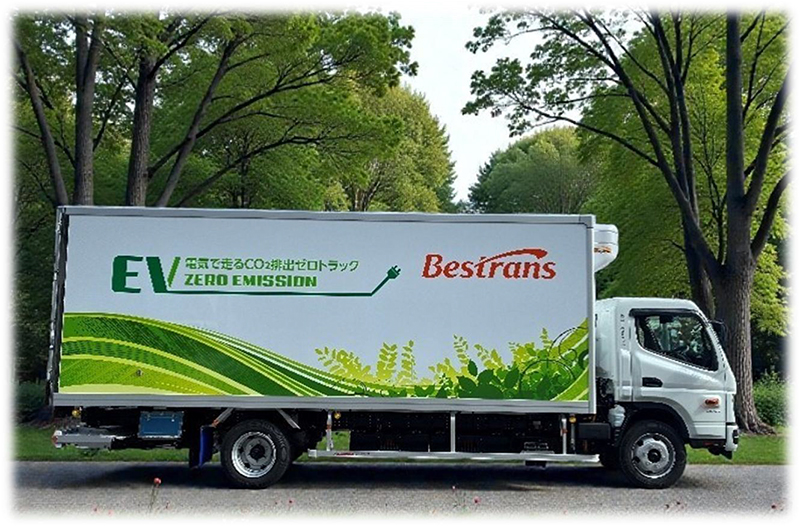 ㈱ベストランスは、カーボンニュートラル(温室効果ガス排出実質ゼロ)およびSDGs社会の実現に向けた取り組みの一環として、このたび EVトラック(電気トラック)を導入いたしました。
